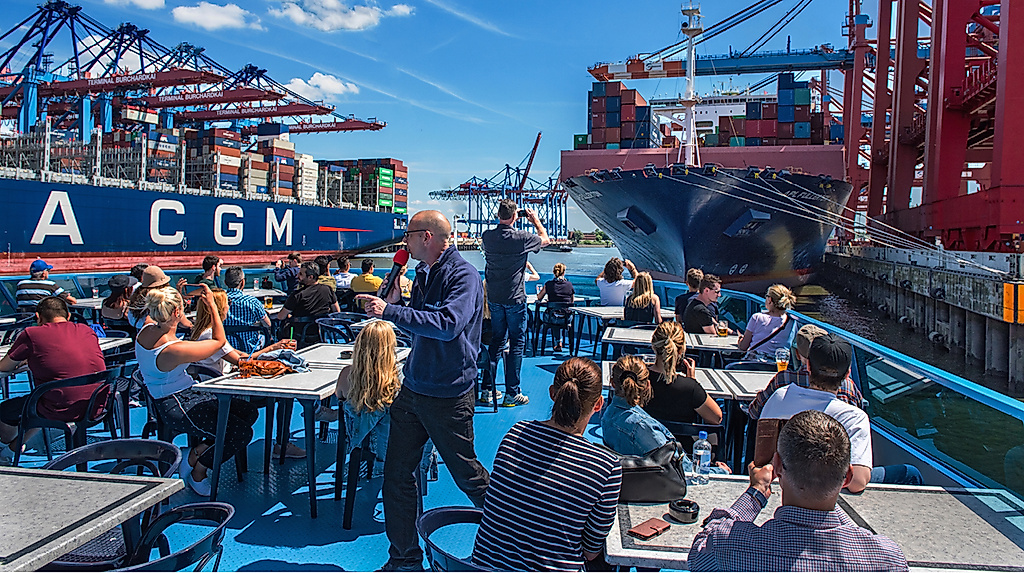 Eine Magie aus Fernweh, Abenteuer und Freiheit. Die Hafenrundfahrt führt von den Landungsbrücken, die für den Dampfschiffverkehr bestimmt waren, vorbei an alten Veteranen wie der „Rickmer Rickmers“ durch die Speicherstadt je nach Tide/Wasserstand in den modernen Hafen der Gegenwart. Sie erleben einen Teil des gigantischen Warenumschlags auf engstem Raum von annähernd 140 Millionen Tonnen und lernen die pulsierende Hafenkante als menschliche, arbeitsame, kreative und kulturell wertvolle Perlenkette Hamburgs kennen.