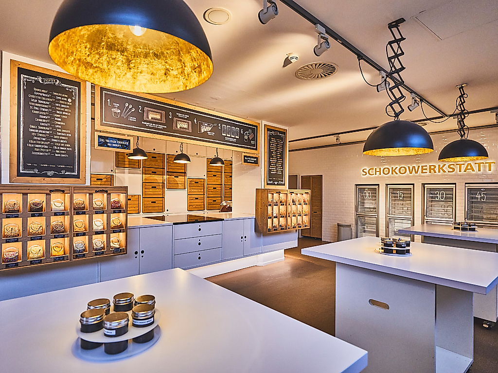 Selbstverständlich gehört zum CHOCOVERSUM auch ein Shop mit Schmackhaftem und Skurrilem rund um das süße Gold. Das Sortiment reicht von Confiserie-Pralinés und dänischen Gewürzschokoladen über Beauty-Produkte aus Kakaobutter bis zu Schokoladenbier und Schokoladensenf.