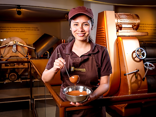 Schokolade macht glücklich! Im CHOCOVERSUM gehen Sie diesem Phänomen mit allen Sinnen auf die Spur. In einer 90-minütigen Führung begleiten Sie die Kakaobohne auf ihrem spannenden Weg vom Anbau bis zur fertigen Tafel Schokolade. Probieren ist dabei ausdrücklich erwünscht! Sie erleben alle Produktionsschritte live und kreieren sogar eine eigene Tafel Schokolade!