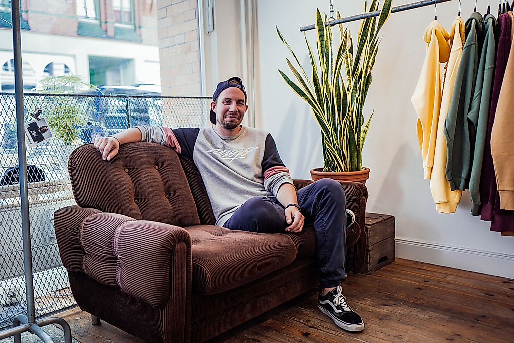 Hier in der Schanze hat sein Kumpel André sein eigenes kleines Streetwear-Label – den Mojo Store – das er nicht nur stolz durch Hamburg trägt, sondern wo er immer wieder gerne für einen Schnack einfällt. Mit viel Liebe zum Detail werden hier fair produzierte Kleidung und Accessoires verkauft. Alles im Streetwear Stil.