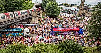 "Du kannst nicht immer 17 sein", aber das muss man beim Schlagermove im Herzen von Hamburg auch nicht, wenn nächstes Mal vom 4. bis 5. Juli 2025 auf Hamburgs Straßen zwischen Heiligengeistfeld und St. Pauli-Landungsbrücken das Festival der Liebe gefeiert wird. Um die 45 bunt geschmückten Musiktrucks tanzen bis zu einer halben Million Schlagerfans. "Hab‘ die Sonne im Herzen", heißt es dann zwischen Kiez und Hafen. Am Nachmittag setzt sich die bunte Schlagerkarawane in Bewegung und dreht bis zum Abend ihre Runde. Schlagerfans aus ganz Deutschland und dem benachbarten Ausland kommen mit Sonnenblumen im Haar, Plateauschuhen, Rüschenhemden und Minikleidern zusammen, um eine schöne Zeit zu haben und den Nachmittag ausgelassen gemeinsam zu erleben.