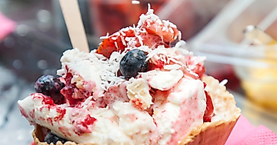 Besucher:innen können aus über 100 Zutaten Ihr Lieblingseis kreieren! Joghurteis mit Frischkäse, Cheesecake und Himbeeren? Milchreis, Franzbrötchen oder Erdnussbutter im Vanilleeis? Marshmallowcreme und Knisterbrause im Erdbeereis? Cookie Dough, Brownie, Nutella.... Klingt verrückt? Ist es auch!